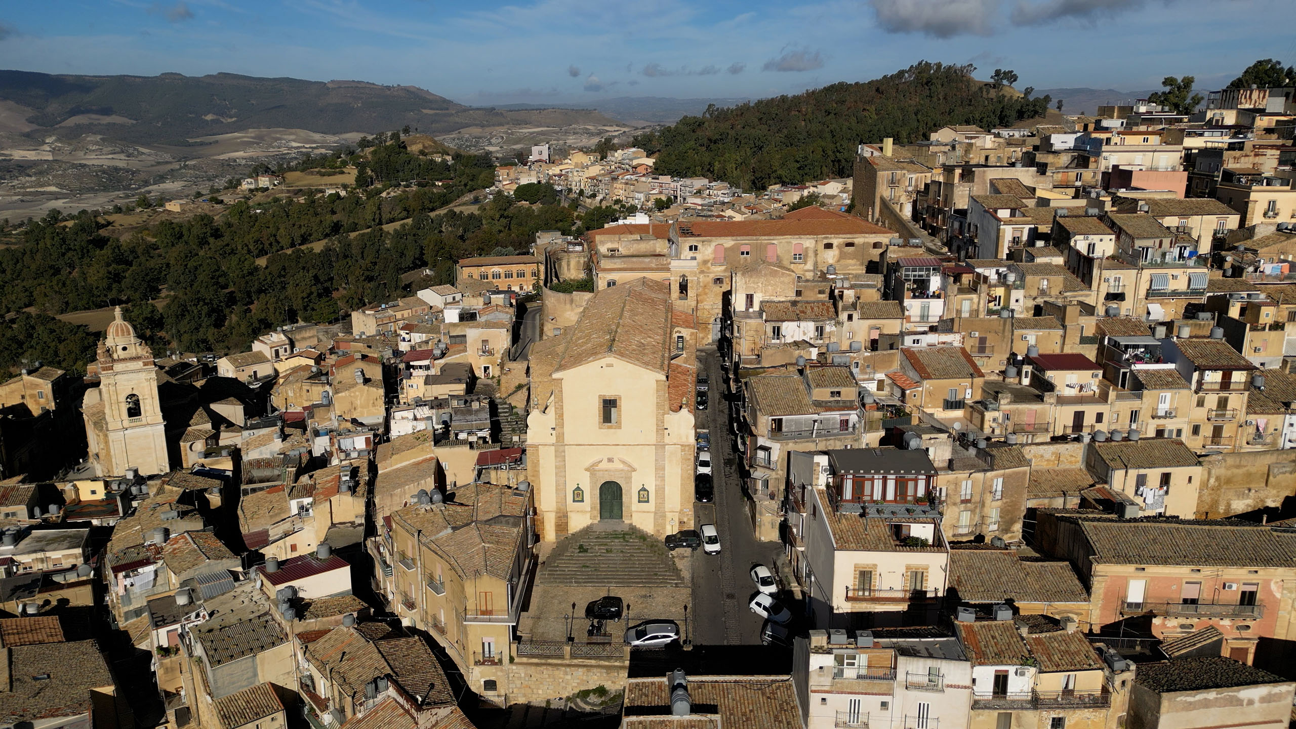 Ricostruita dopo il terremoto del 1693, sul semplice prospetto principale sono posti due pannelli in ceramica di Giuseppe Di Bartolo, raffiguranti San Francesco d’Assisi e la Madonna della Salute.