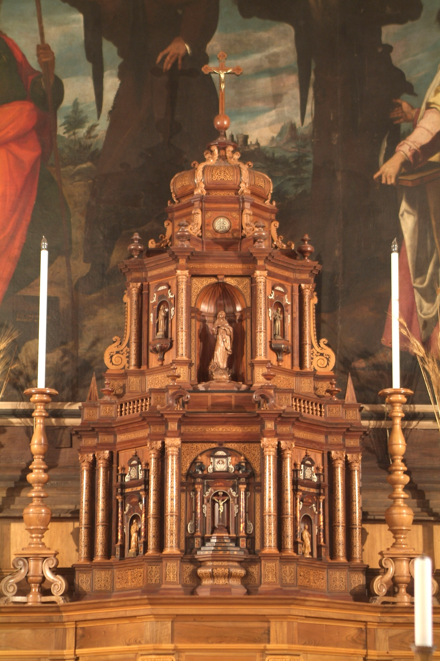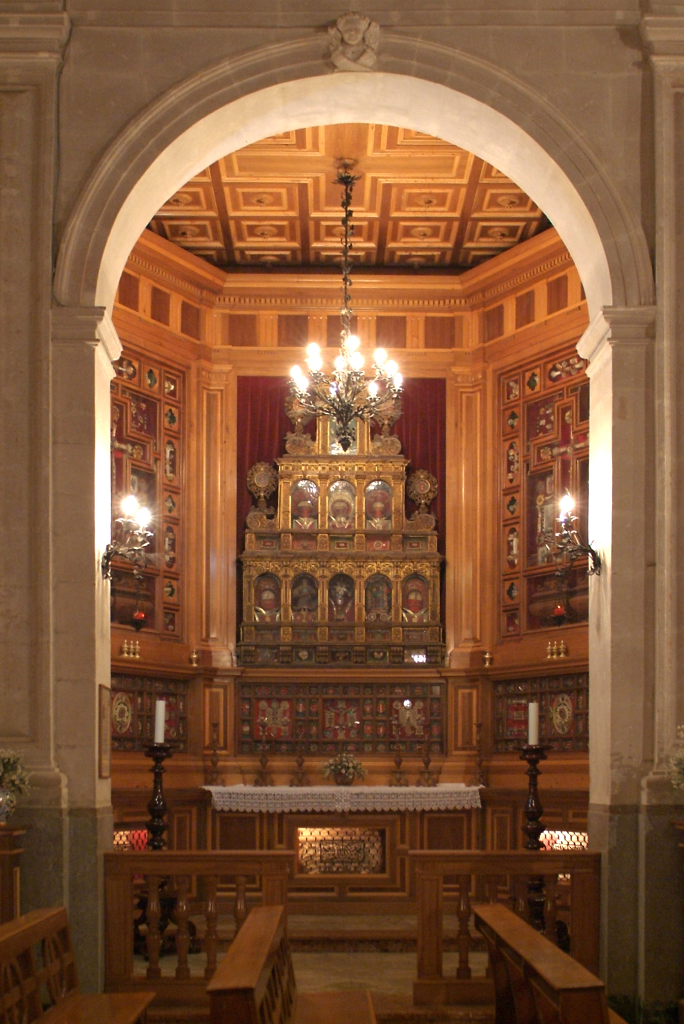 Proprio nell’abside è collocata una grande macchinetta lignea con al centro la tela seicentesca del pittore