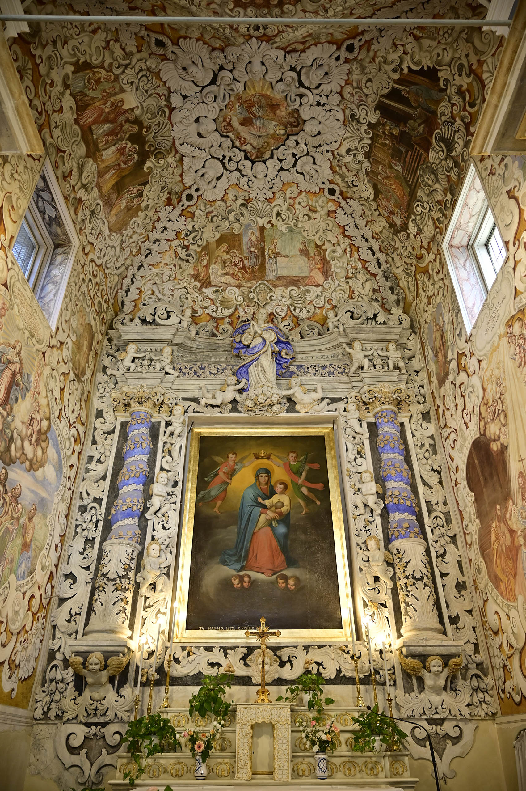 Sopra l’altare è collocata una Madonna col Bambino del Vaccaro.