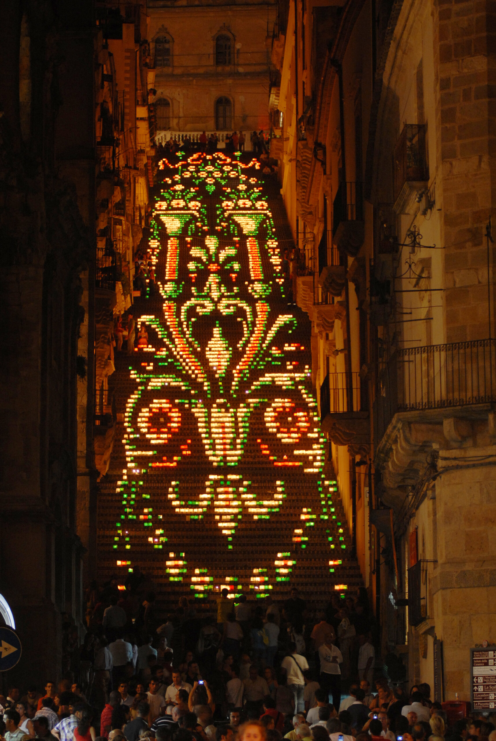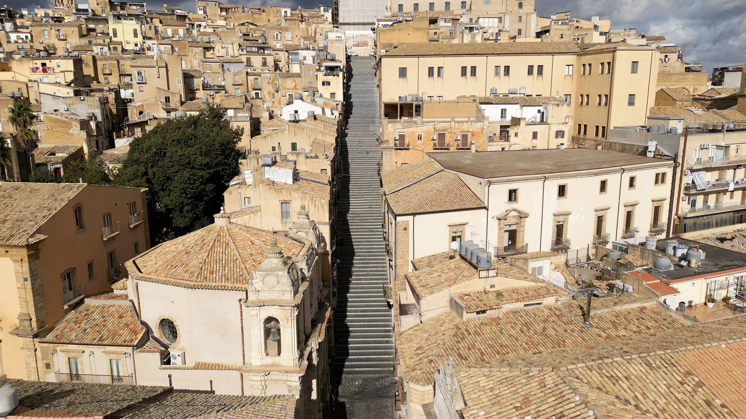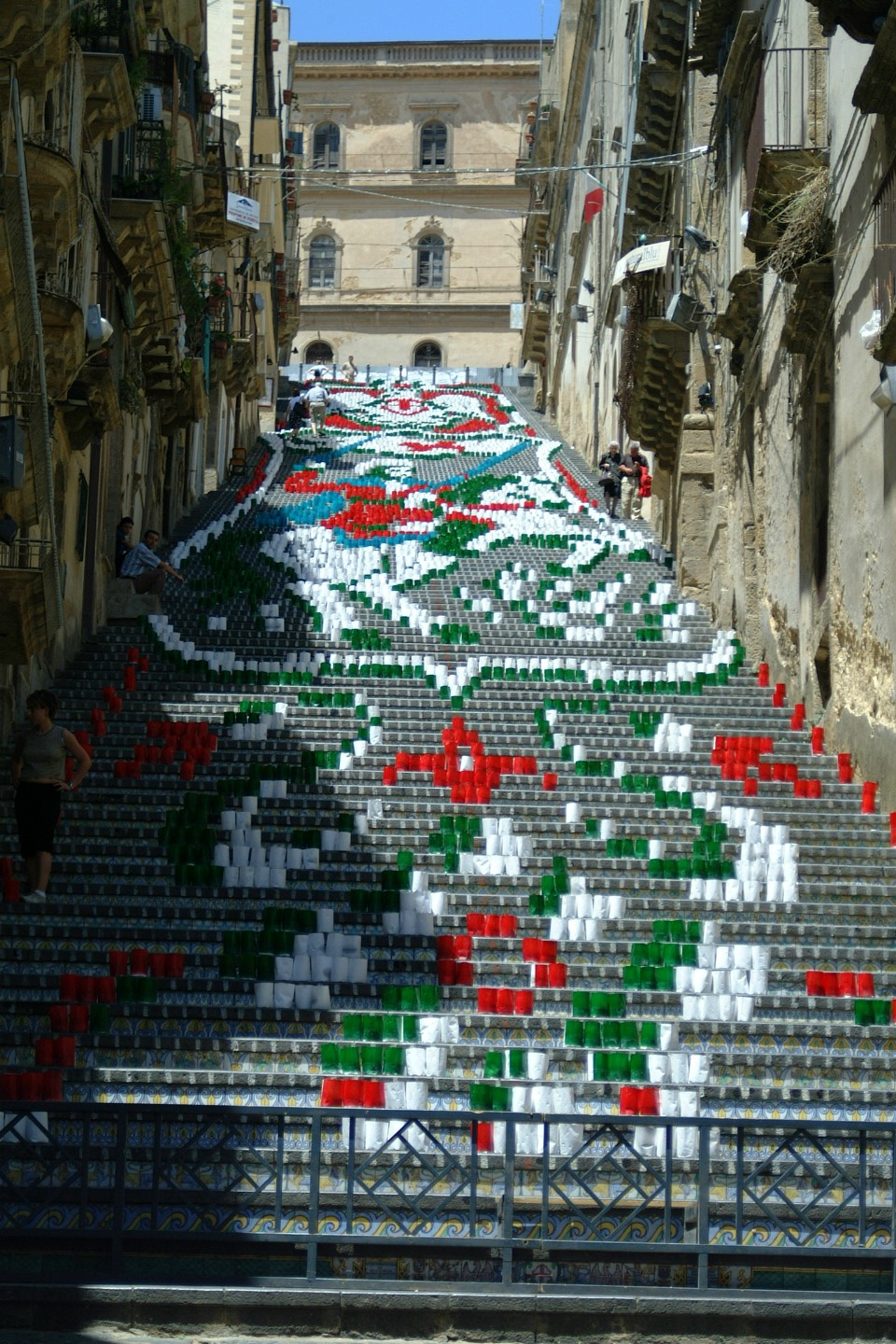 Costruita nel 1606 dal capomastro del Regno Giuseppe Giacalone per collegare la città antica con quella nuova, edificata a una maggiore altezza, la scalinata è lunga oltre 130 metri ed è uno dei simboli di Caltagirone.