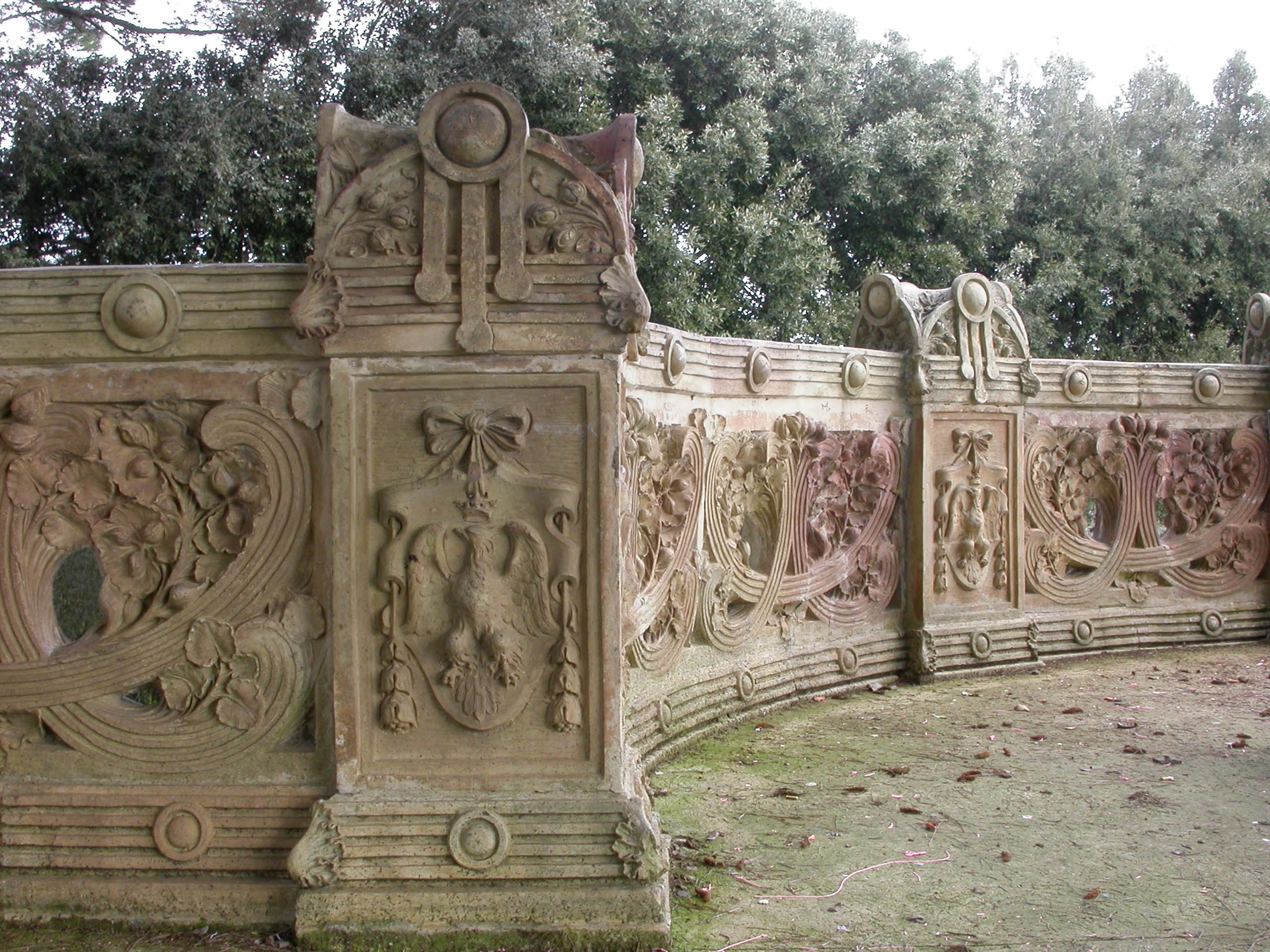 Nel piazzale centrale spicca il palco musicale in stile moresco rivestito con maiolica policroma, mentre lungo i viali si trovano vasi di terracotta, maioliche e terrecotte ornamentali di artisti di pregio.