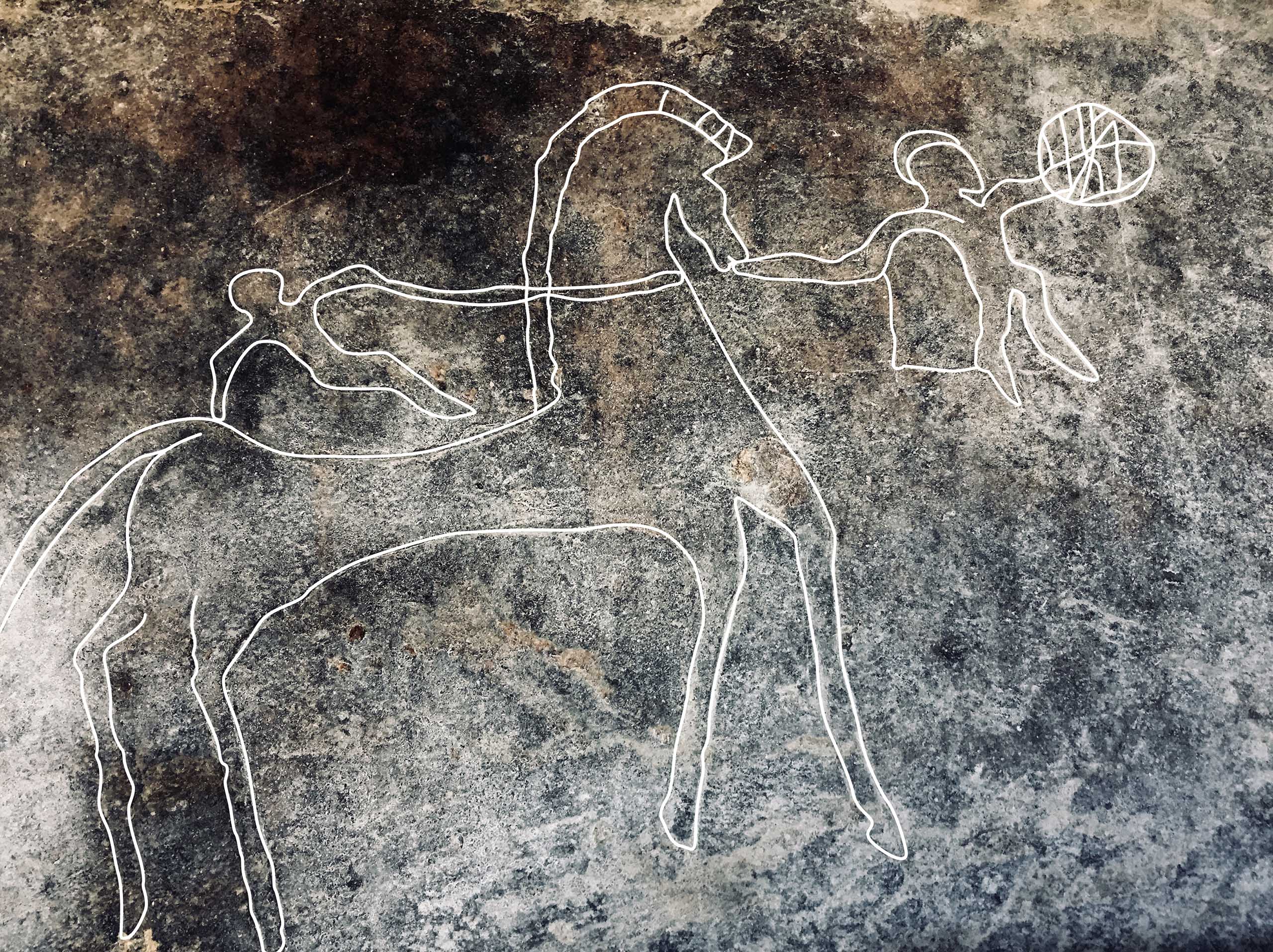 I graffiti che li decorano, di particolare fattura, rappresentano scene di caccia al cinghiale e al cervo, cavalieri e cavalli con il capo coperto da elmi e altri animali stilizzati.